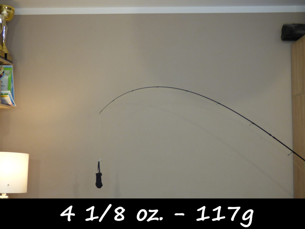 Jak prezentuje się akcja tego kija? Producent napisał nam w katalogu o delikatnym i progresywnym Fast’cie. Gdy przyjrzymy się zdjęciom ugięć trzeba zwrócić uwagę, że szybkość kija zahacza o pogranicze Fast i Medium Fast. Zwraca uwagę również spora spolegliwość krótkiej wklejanej szczytówki, która w zestawieniu z resztą blanku objawia się dobrze widocznym w całym spektrum ugięć przesztywnieniem blanku w miejscu ich łączenia.