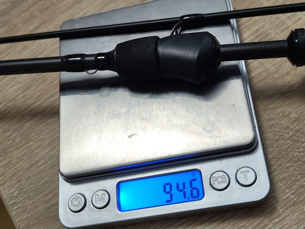 Wędka wedle producenta powinna ważyć 88g. Deklaracje pokrywają się z rzeczywistością. Waga elektroniczna pokazała 88,4g. Całkiem nieźle…