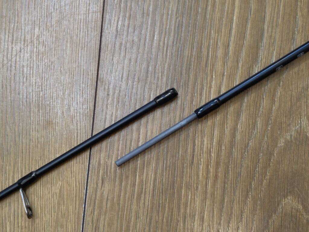 Kij mierzy 210cm. Przy przelotce szczytowej, krótka wklejana szczytówka ma 0,90mm średnicy. Przy dolniku kij mierzy 9mm. Zbieżność całości jest dość umiarkowana. Blank wykonano z carbonów 24T i 30T.